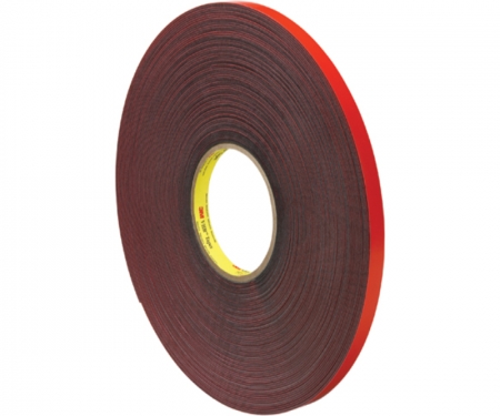 - Red polyethylene liner, dark gray acrylic foam with an acrylic adhesive.