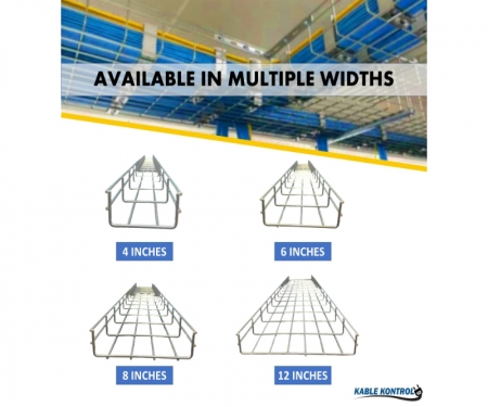 Kable Kontrol’s professional quality Galvanized Steel Wire Mesh Cable Management Cable Trays for your building's wire management needs. Our standard and budget-friendly cable and wire tray system comes in four different widths (4", 6", 8", 12") at a 2” & 4” depth.