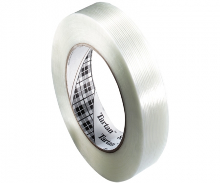 The 3M™ Tartan™ Filament Tape 8934 is constructed on a clear polypropylene backing, reinforced with glass yarn filaments, for strapping, bundling, and reinforcing applications. It has a tensile strength of 100 lbs/in and a pressure-sensitive synthetic rubber adhesive offers good shear strength to fibreboard, plastics, and most metal surfaces.