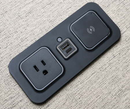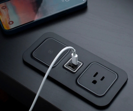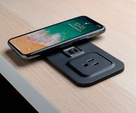 Innovative, in-surface charger features a Qi wireless charger, USB-C/A and power outlet designed as a stylish flush mount power and charging solution for the hotel guest room, business center or lobby space. It incorporates TR power outlets with USB charging. ETL safety tested and trusted by major hotel brands as reliable and durable, the CubieMod is a great solution for commercial public spaces. CubieMod 2.0 Qi Wireless Charger provides a stylish in-desk power and charging solution for the hotel guest room, business center or lobby space. CubieMod 2.0 Qi Wireless Charger offers 2 TR Power Outlets and 1 USB-A and 1 USB-C Charging Ports as well as complete surge protection. Available with a 6ft power cord.