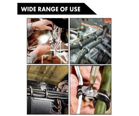 - Commonly used with aircraft harnesses, pipes, and hoses