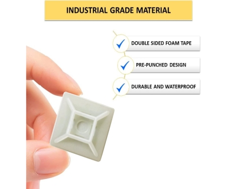 Adhesive-backed nylon zip tie mounts are designed to be used together with cable ties. adhesive zip tie mounts are an easy solution to secure your wire bundles or other items to any surface you desire. Adhesive-backed cable tie mount can be secured to the surface by the adhesive tape on the back after the backing paper is peeled off. May be secured using a self-tapping screw inserted into a special hole.