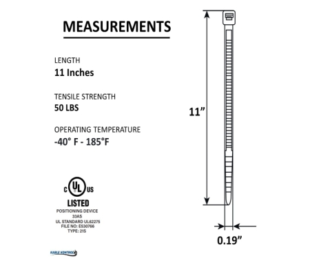 | CT511FL-PK-100 | 11" (280mm) | 50 lbs | 3/16” (4.8mm) | 3.189" (81mm) | 85 Packs |