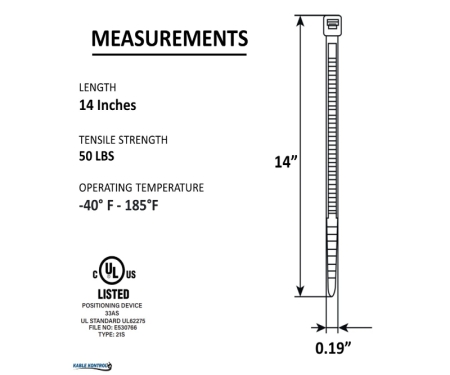 - 14 Inch = 50 and 120 Lbs Tensile / Break Strength