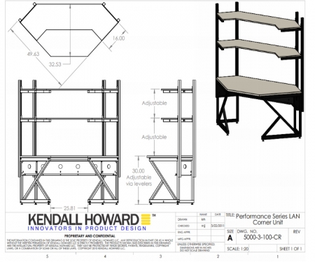 The Kendall Howard Performance corner computer workstation is commonly used as a technology bench, video editing station, command console, security monitoring station, and much more. designed to allow users to sit at this modular and functional work station. Because there is not a lower shelf users have plenty of legroom, creating a functional and comfortable place to sit and work.