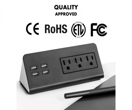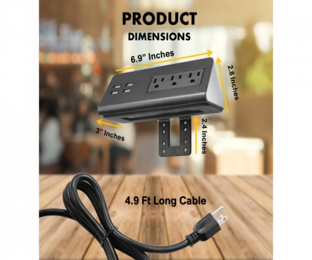 With 3 AC Power Outlets (125V 10Amp), 4 USB charging ports (4.0Amp shared), and 4.9 FT power cord, powering multiple devices simultaneously in a compact, contemporary design. If too much current passes through the unit, it features an overload protector which will have to be reset when tripped.