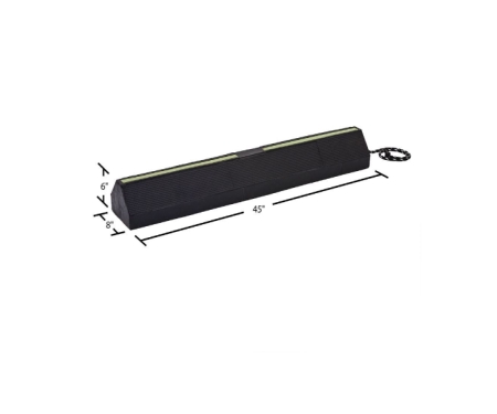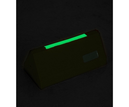 Elasglow glow-in-the-dark stripe on top and one reflector on each side. Designed to provide a highly-visible safety stop for small, parked aircraft, such as Cessna. Manufactured from solid-cast polyurethane with embedded Elsaglow technology and reflector strips.Elasglow stripe on top increases low-light visibility.Available in three different colors.