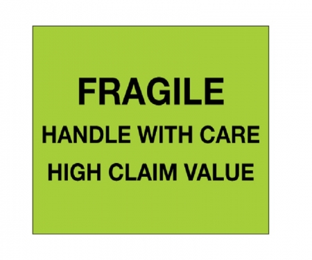 "Fragile Handle With Care - High Claim Value" Fluorescent Green Labels