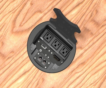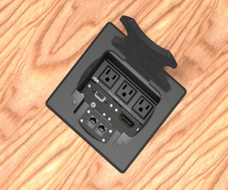 The T6-AC3 clearly sets itself apart by being one of the only table boxes available that may be changed easily. You choose from a variety of connector plates, add the connectors or cable brushes you need, pop them in and you're good to go.