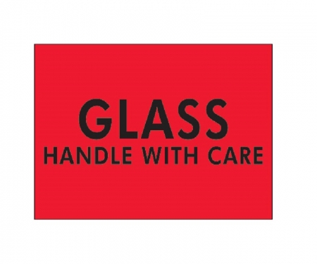 "Glass - Handle With Care" Fluorescent Red Labels Features