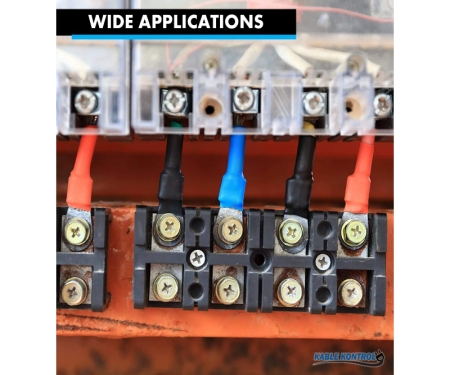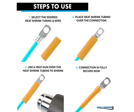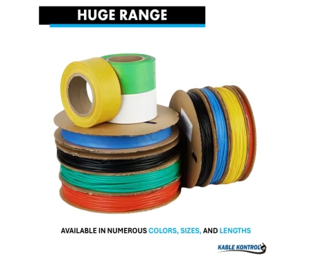 Durable, flexible, and flame retardant Kable Kontrol polyolefin 2:1 heat shrink tubing can be used for electrical insulation, wire bundling, color coding, lightweight harnessing, wire strain relief, and wire identification purposes in a variety of home, commercial, industrial and military applications. Kable Kontrol 2:1 heat shrink tubing slides easily over small inline splices and connectors, and shrink down to 50% of its original diameter to fit snugly over any wire, hose or cable management project. Also, polyolefin heat shrink tubing is the ideal way to terminate the ends of your Braided Sleeving, creating a tight, professional finish. Self-extinguishing heat shrink tubing is in compliance with RoHS, the European directive on the Restriction of Hazardous Substances. This thin wall, 2:1 heat shrink tubing is made from a specially formulated, cross-linked polyolefin. Order heat shrink tubing rolls in your choice of length diameter and color.