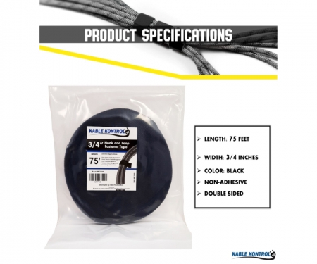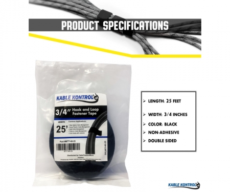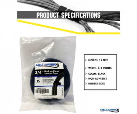The Kable Kontrol® Hook and loop tape is a versatile and convenient product that can be used for a variety of applications. Whether you need to secure cables, organize tools, or hang decorations, this tape is up to the task. A great feature of this tape is its flexibility. You can cut it to any length you need, and it will remain strong and durable. This means you can use it for large or small projects, and it will always perform well. Kable Kontrol’s Hook and loop tape is also easy to use. Simply peel off the backing and apply the tape to the surface you want to secure. It's that simple! Overall, Kable Kontrol’s hook and loop tape is an affordable and versatile product that can help you get organized and keep your space neat and tidy. Whether you're a DIY enthusiast, a professional contractor, or just someone who likes to keep their home organized, this tape is a must-have.