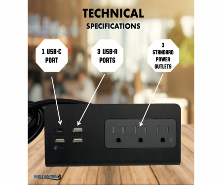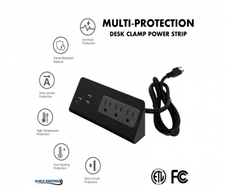 Kable Kontrol is among the top leaders in the cable management industry providing a diverse range and top-quality wire and cord management products. The new multi-protection desk clamp power strip is an all-in-one charger station which provides not only power source to your devices but also fast charging to your USB-A as well as USB-C devices. It is not a power strip anymore, but a power hub. This desk edge power outlet comes with its mounting hardware kit which allows easy edge installation of this charging strip over variety of surfaces.