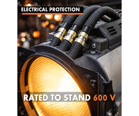 The Kable Kontrol® Heat Resistant Braided Fiberglass Wire Sleeve delivers dependable insulation and protection in demanding high-temperature environments. Constructed from premium fiberglass yarn coated with durable acrylic acid resin, this sleeving is engineered to remain flexible and intact under extreme heat, cold, abrasion, and electrical stress. Designed to resist fraying at the ends, it offers a cleaner installation and long service life, even in applications exposed to continuous elevated temperatures or rapid temperature changes. Its self-extinguishing flame-retardant properties and 600V dielectric strength make it a trusted choice for electrical, industrial, and thermal insulation needs.