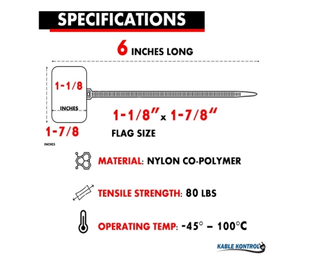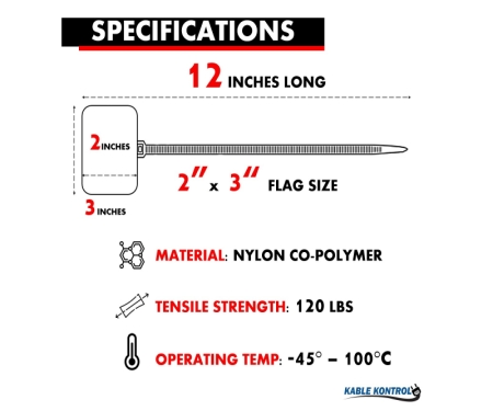Optimize your cable management with Kable Kontrol® Large ID Flag Cable Zip Ties. Experience the benefits of robust strength, clear identification, and long-lasting durability with our premium zip ties. Invest in quality and reliability for your cable identification needs.