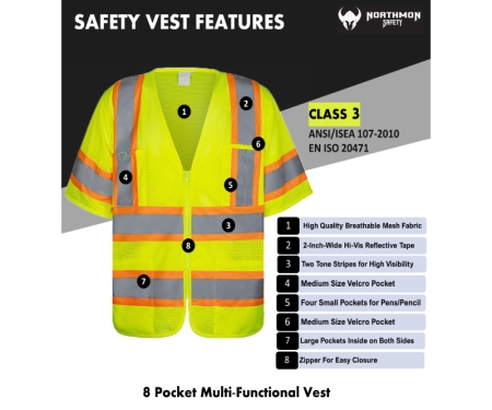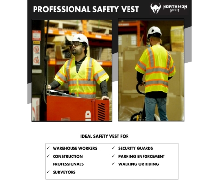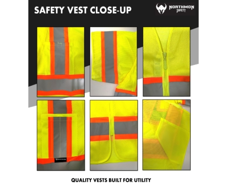 Whether you're working in construction, road work, or any other industry that requires high visibility, the NORTHMON SAFETY Reflective Safety Vest with its combination of spacious and utility pockets is the ideal choice for you. Stay visible, stay protected, and prioritize your safety with our reliable and durable safety vest.