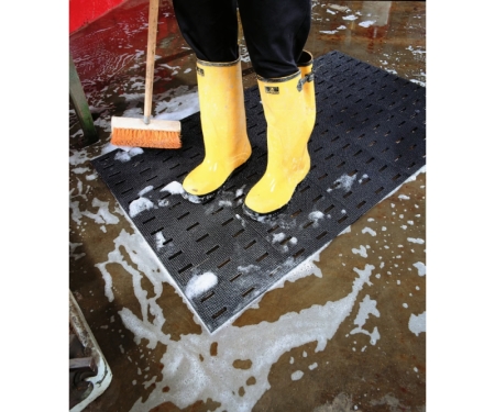 - Studded bottom surface raises mat and allows for channeling of moisture and continuous aeration