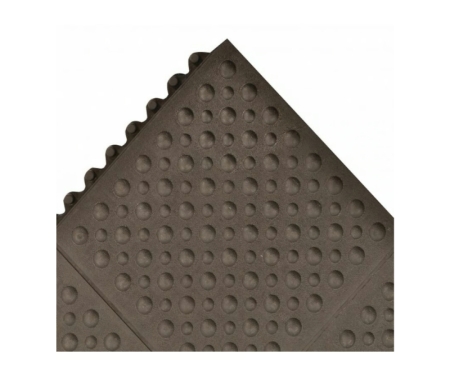 Notrax Cushion-Ease® Ergo™ is a high performance interlocking anti-fatigue matting system made with a resilient rubber compound with a solid top anti-slip surface texture and a multi-nib backing for comfort and ergonomic support of the mat. Cushion-Ease® Ergo™ mold has been engineered to produce a mat that is functional, comfortable and durable. All Cushion-Ease® series mats have a male/female interlocking system for individual workstations, long runs, unique configurations and wall-to-wall floors. Also compatible with NoTrax® M.D. Ramp System® for easy on-site custom configurations and trip-resistant platforms.
