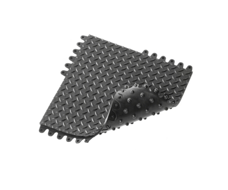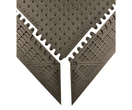 Notrax The De-Flex® heavy duty rubber mat is the latest technology in modular flooring systems. It’s the ultimate heavy duty floor mat for durability, comfort and safety. Its unique rubber formulation with bulleted domes underneath, gives this this anti fatigue mat the ability to bend and flex with every movement. The 18 x 18-in tiles allow you to create any size floor mat, and the diamond plate traction provides additional safety. Ideal for industrial floor use, this thick rubber mat is commonly used for long runs, custom configurations, or wherever heavy equipment floor mats are needed.