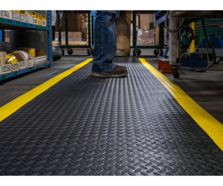 - Non-directional diamond plate textured embossed mat maximizes worker comfort