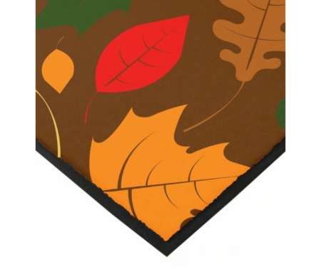The fall leaf decorative door mat features a high-quality 24 oz. nylon top surface that provides excellent moisture absorption and retention. Dye is injected deep into the carpet pile for long-lasting, vibrant color that resists fading over time.