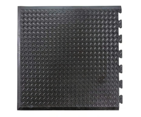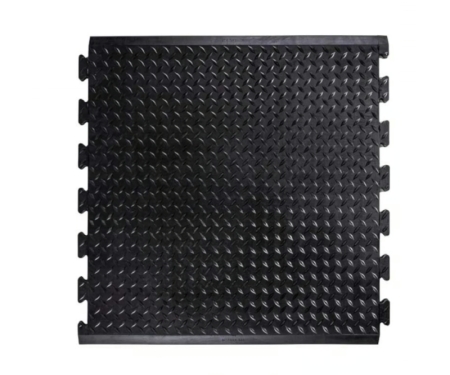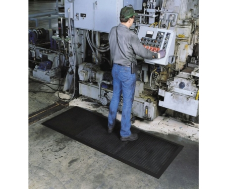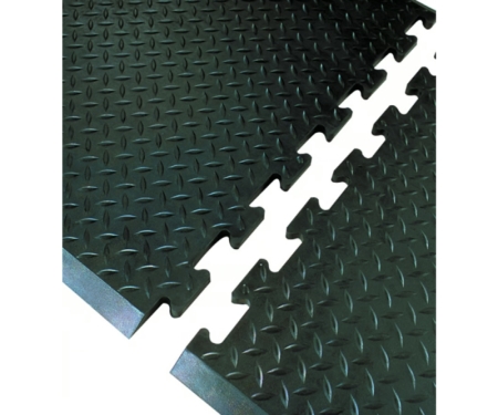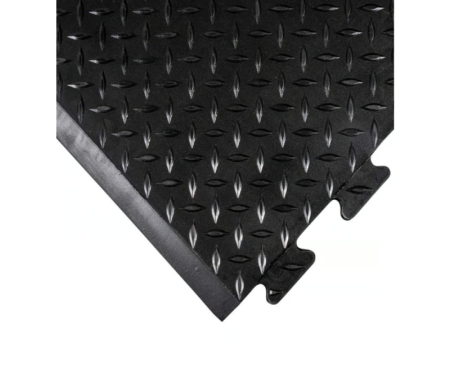 Notrax Diamond Top Interlock™ features a rubber diamond plate top surface for traction, and a sturdy waffle support system on the underside for maximum comfort. Offered as a stand alone mat, or as an interlocking continuous length, this mat is perfect for assembly lines, welding areas, picking lines, and other heavy duty dry work areas. Diamond Top Interlock™ works well in wet or dry environments where long runs of anti-fatigue matting are needed.