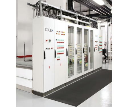 Notrax Corrugated Switchboard Matting is a non-conductive floor matting made from a PVC compound, designed to provide insulation for the worker. The mat prevents the worker from being grounded, thereby eliminating the possibility of electrical shock. The corrugated saw-tooth top surface provides increased traction and is easy to sweep clean. Switchboard matting is intended for use in dry environments in front of high voltage boxes, electrical fuse boxes, and transformers.