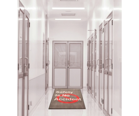 Notrax Safety Message mats make your safety message loud and clear while keeping facilities cleaner and safer. Pre-printed message mats warn employees who may be entering a hazardous area, may need special ear or eye protection, or just act as a reminder to think and act safely in work environments. Pre-printed message mats offer functionality as an entrance mat cleaning dirt and moisture from shoes, keeping facilities cleaner and safer. Safety Message Mats should be used indoors at plant and employee entrances, lobbies, foyers, or any other light to heavy traffic areas where your safety message should be seen.