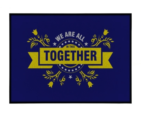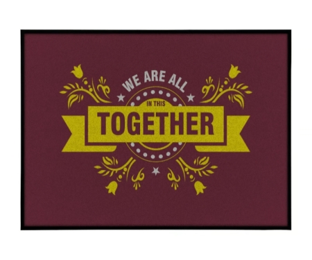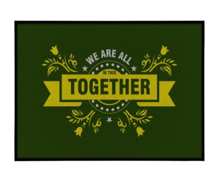 The uplifting doormat with its inclusive We are All In This Together message features a high-quality 24 oz. nylon top surface that provides excellent moisture absorption and retention. Dye is injected deep into the carpet pile for long-lasting, vibrant color that resists fading over time.