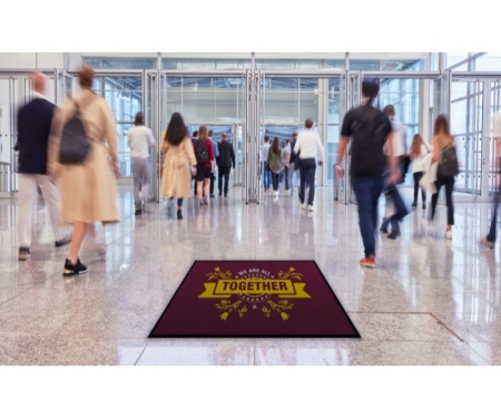 Notrax Bring some positivity and a warm welcome when you use the NoTrax We Are All In This Together Doormat, model 195TO. The decorative door mat keeps floors clean and safe when used indoors at entrances, lobbies, foyers, or any other light to heavy traffic areas.