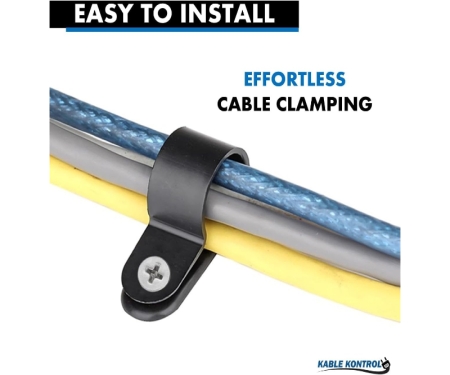 Introducing the remarkable Kable Kontrol® Nylon Plastic Cable Clamps – the ultimate solution for achieving absolute control over your cables. These innovative wire clamps excel at effortlessly mounting cable bundles to various surfaces such as walls, ceilings, or any desired location, providing unparalleled cable management and component security. With their remarkably straightforward design, these plastic wire clamps grant you the convenience of single-handed operation, allowing you to effortlessly open and close the jaws.