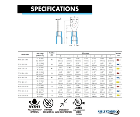 Kable Kontrol® Ring Terminal Connector - Nylon Insulated Features
