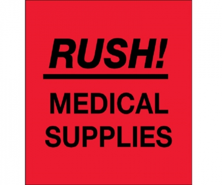 "Rush - Medical Supplies" Fluorescent Red Labels