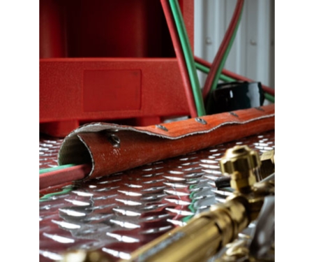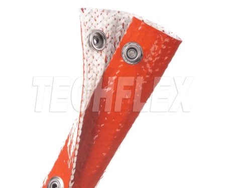 FIREFLEX® SNAP WRAP offers the same high temperature protection as FireFlex being constructed of silicone blanketed fiberglass. Heavy duty snaps dot the edges of Snap Wrap allowing quick and easy installation that's, um...well, a snap! FireFlex® Snap Wrap is engineered to protect welding hoses and assemblies from damage due to exposure to extreme heat, open flame, molten splash and welding sparks. The thick, high temperature fiberglass sleeve is jacketed with a non-permeable, heavy silicone coating that is flexible enough to follow tight radius curves, resists all automotive chemicals and solvents, and provides a substantial level of abrasion and puncture protection. Just like FireFlex®, FireFlex® Snap Wrap is completely non-conductive, will not melt, delaminate, become brittle or support combustion under normal conditions. It provides a quick and professional level solution to your welding or fabrication thermal and abrasion protection needs.