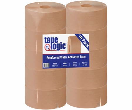 Tape Logic Reinforced Water Activated Tape is great for tamper evident shipping and packaging. Excellent flexibility for sealing carton corners and irregular surfaces. Recommended for boxes under 20 pounds. Water activated tape and can be moistened by hand or combined with Tape Logic Paper Tape Dispenser for easy application. Bonds instantly to all corrugated carton surfaces and generates an immediate tamper-evident bond. Water activated tape is not affected by extreme hot or cold temperatures. Extra strong fiberglass yarns are strategically bonded between sheets of paper to provide an extra margin of strength. 100 percent recyclable and repulpable