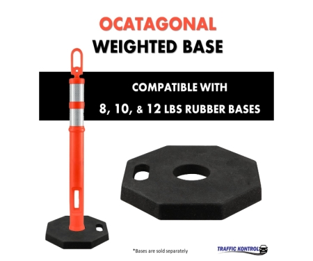 Crafted from HDPE+Elastomer (High-Density Polyethylene), the Traffic Arch-Top Delineator is built to withstand the challenges of the road. It is compatible with 8 lbs, 10 lbs, 12 lbs, and 18 lbs rubber bases, offering stability and support in diverse conditions. Choose the option that suits your needs, with or without the 8 lbs and 12 lbs base.