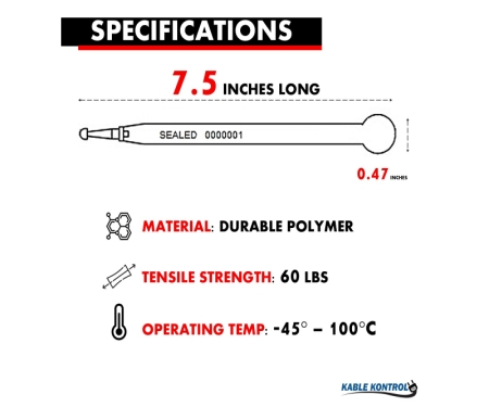 Ensure the security and integrity of your cargo with Kable Kontrol® Plastic Truck Seals. Experience the benefits of robust strength, unique identification, and clear tamper evidence with our premium truck seals. Invest in quality and reliability for your transportation security needs.