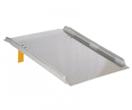 The Aluminum Hand Truck Dockboards are lightweight and can be carried and positioned by one person. Provides a safe and convenient bridge between dock and truck. Welded aluminum diamond tread plate surface and beveled edges provide safe and smooth entry and exit. The 12 degree bend is located 6" from edge and is designed to keep ramp edges flush with the dock surface and the truck floor. The unit is equipped with bolt-on locking legs and full length aluminum curbs that provide hand holds and reduce chance of roll off. 800 lb. uniform capacity. Designed for use with two-wheeled hand trucks. 3/16" plate thickness. Manufactured in compliance with OSHA.
