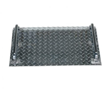 Aluminum Mini Dock plates can scale 3" to 5" high curbs and door thresholds. Ideal for use with two-wheeled hand truck for deliveries. Aluminum construction is lightweight yet durable, 1/8" thick plate. Features carrying handles and diamond tread plate surface for better traction.