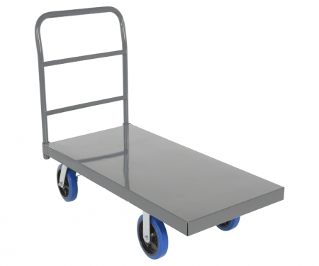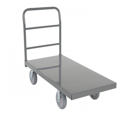 - Platform truck with solid, smooth steel deck is all welded for maximum strength
