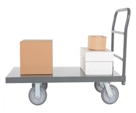 A steel platform truck is a perfect addition to any warehouse or shipping center. The steel platform design enables the user with a better sense of security. With a smooth surface, the amount of abrasion and scuffs during movement is limited. The steel handle allows the user to maintain an ergonomic posture while transferring goods. Powder coated finish provides added toughness.