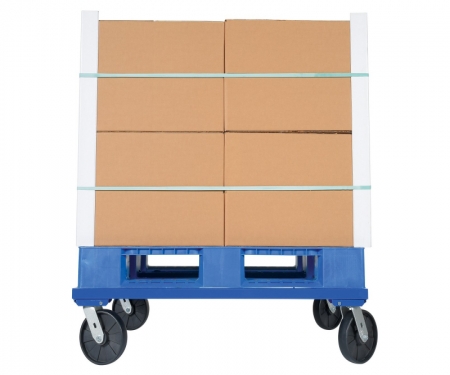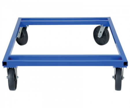 Move pallets without a fork truck or pallet jack. Designed for holding standard wooden pallets. Transport pallets and skids with these open frame all welded steel dollies. 2,000 lb. capacity units roll smoothly on four swivel mold-on-rubber casters. 4,000 lb. capacity units feature glass-filled nylon swivel casters. Casters are bolted to each dolly. Blue powder coat finish.