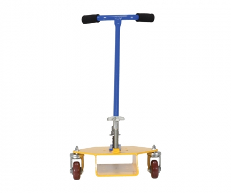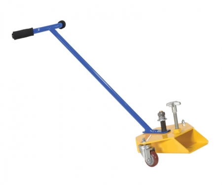 After transporting the fork to the forklift, rotate the handle 90 degrees then slide the fork onto the mast. The Fork Caddy has easy-grip handles and rolls smoothly on two swivel casters. A star knob secures the caddy onto the fork to keep it in place while transporting. The comfort-grip handle pivots up to 180 degrees to allow for easier mobility. The Fork Caddy is lightweight and small enough for easy storage as well.